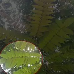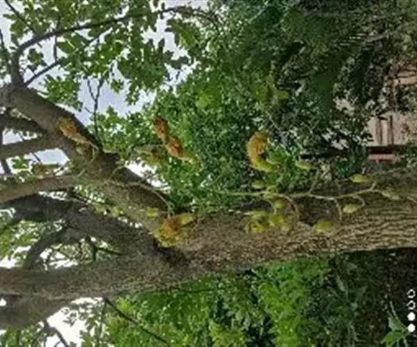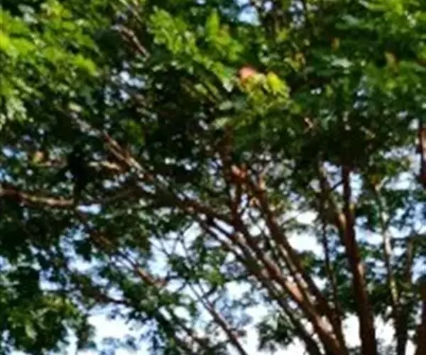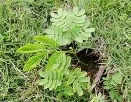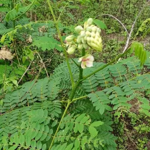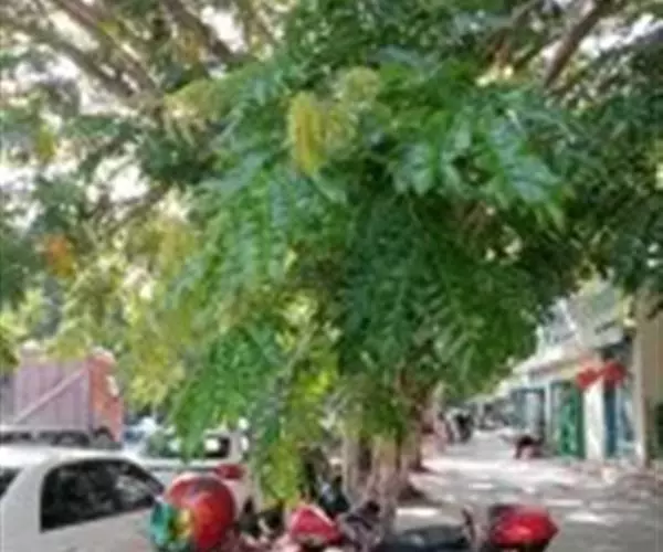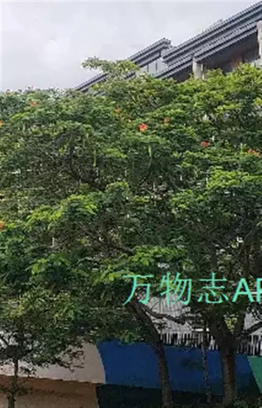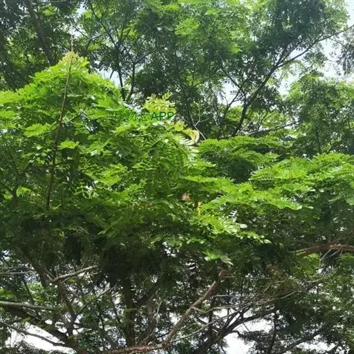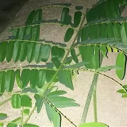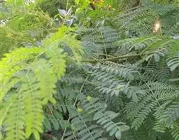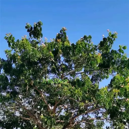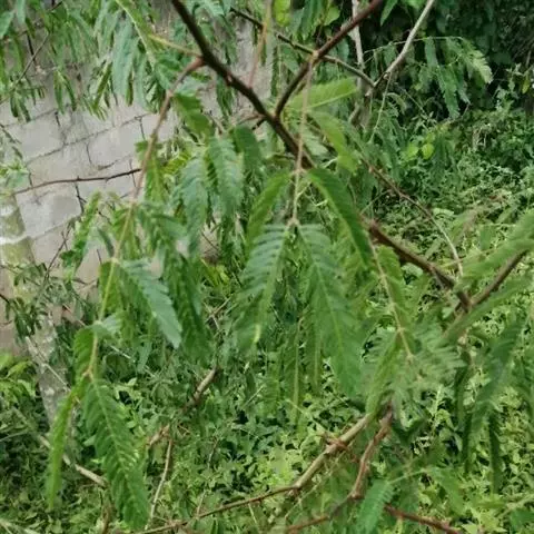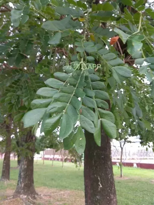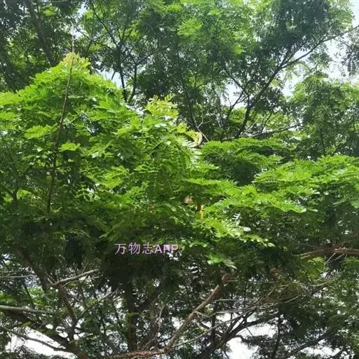 无刺大乔木;树冠极广展,干高10-25米,分枝甚低;幼嫩部分被黄色短绒毛。羽片3-5(-6)对,长达15厘米;总叶柄长15-40厘米,羽片及叶片间常有腺体;小叶3-8对,由上往下逐渐变小,斜长圆形,长2-4厘米,宽1-1.8厘米,上面光亮,下面被短柔毛。