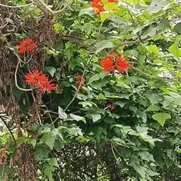 刺桐,是豆科刺桐属乔木植物。树皮灰褐色;分枝有圆锥形黑色皮刺;叶柄无毛,无刺;花密集,…