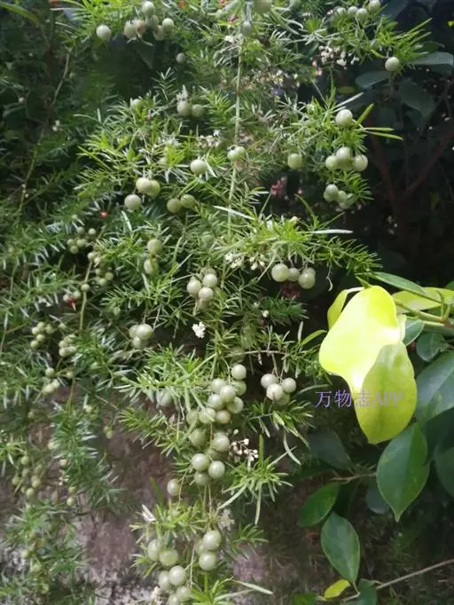非洲天门冬 Jessop)半灌木,多少攀援,高可达1米。茎和分枝有纵稜。叶状枝每3枚成簇,扁平,条…