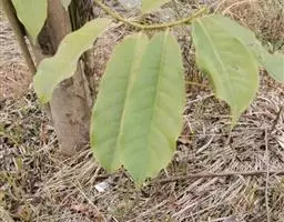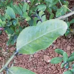 叶薄革质,狭长圆形或狭倒披针状长圆形,长10-20 (24)厘米,宽3.5-6.5厘米,先端渐尖或短急尖,基部楔形或阔楔形,上面中脉凹入,常残留有毛,下面苍白色,被银灰色、或红褐色柔毛;侧脉纤细,每边11-15条,网脉致密,两面均凸起;叶柄长1.5-3厘米,老时变黑色,无托叶痕。