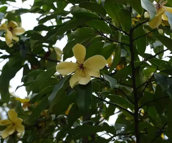 多花含笑是木兰科,含笑属小乔木,高可达20米。芽圆柱形或狭卵形,嫩枝被淡黄色绒毛,老枝无毛,叶革质…