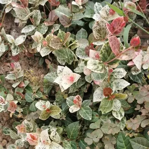五彩络石为常绿蔓性藤本植物。匍匐生长,茎具白色乳汁,叶对生,革质,卵形,长3厘米,宽2厘米。喜阳耐…
