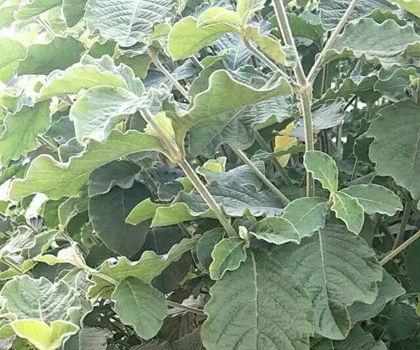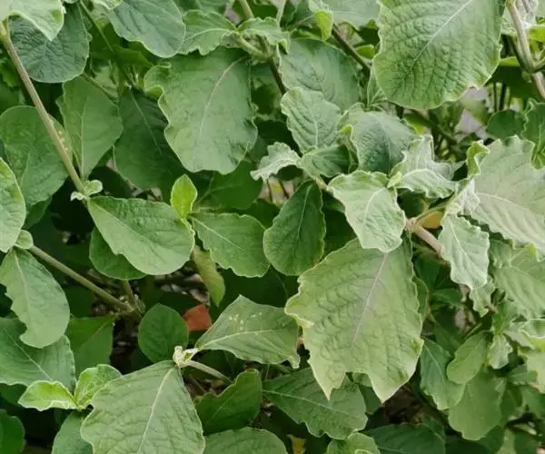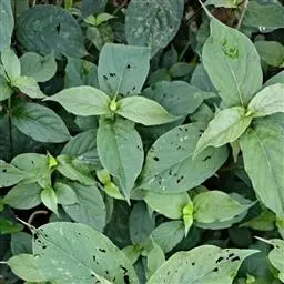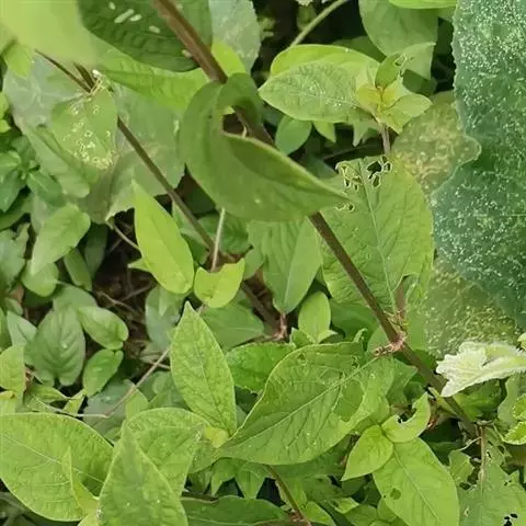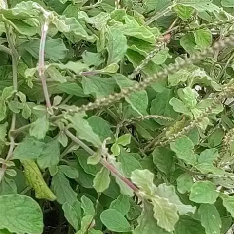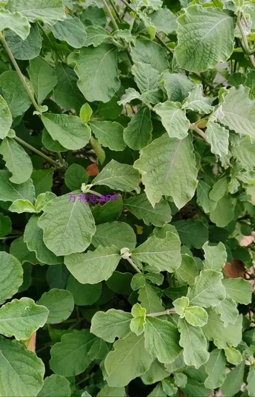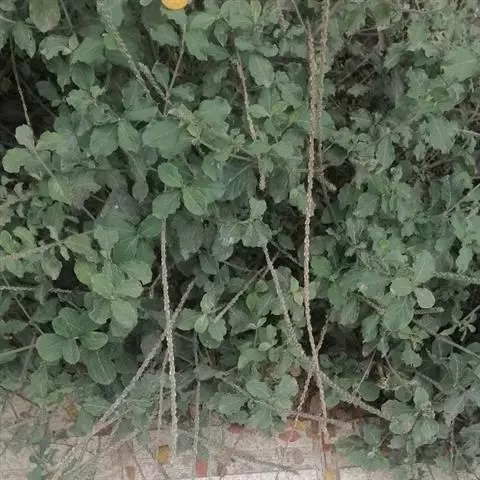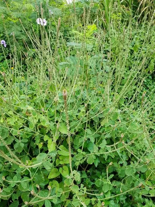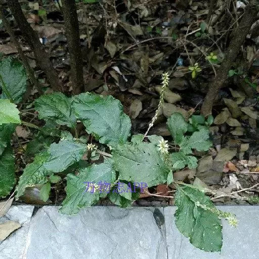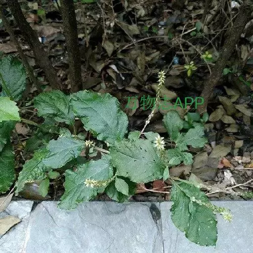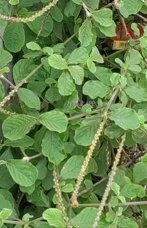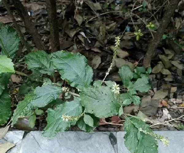 4、植物钝叶土牛膝,茎密生白色或黄色长柔毛。叶片倒卵形,长1.5~6.5厘米,宽2~4厘米,顶端圆钝,常有凸尖,基部宽楔形,边缘波状,两面密生柔毛。