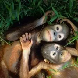 猴子的一家 每年秋季是金丝猴的发情期,性成熟期雌性早于雄性,雌约4~5岁,雄猴迟到7岁左右。全年均有交配,但8~10三个月为交配盛期,孕期6个月左右,多于3~4月产仔,个别也有在2月或5月产仔的。雌猴妊娠期为6个月左右,通常一胎一仔,偶产二仔。刚生下的小猴子脸呈暗蓝,毛色棕褐,叫声如婴儿哭泣,一个月后体重就达一公斤多,成年猴群中,雄雌性比约为1:2。
