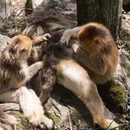 打斗 仰鼻猴属发生在距今100多万年前的更新世时期的中国秦岭地区,一般认为金丝猴的起源与欧亚晚中新世至上新世时期的中猴(一种古老的疣猴)和来自子欧洲的Doliehcpithecus有关。