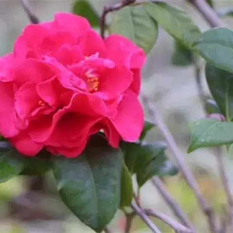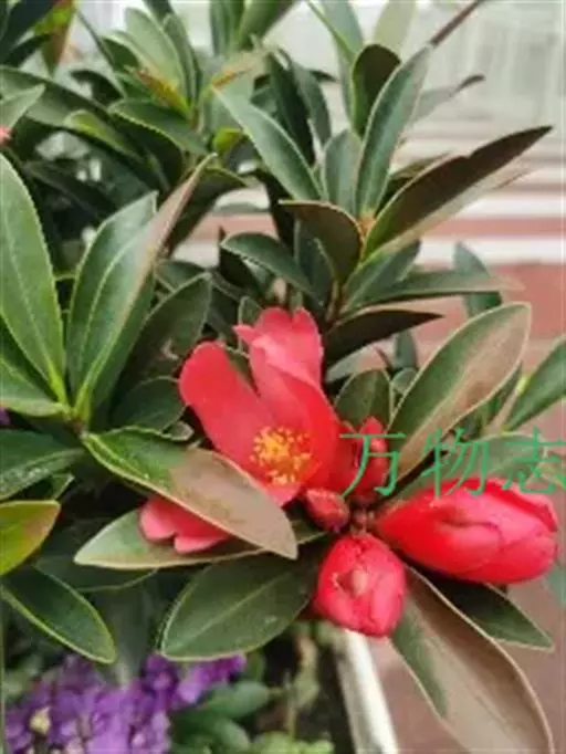 毛蕊红山茶,灌木至小乔木,嫩枝初时有白毛,不久变秃。叶薄革质,长圆形。花期冬春间,分布于中国四川、广西、贵州、云南等地区。