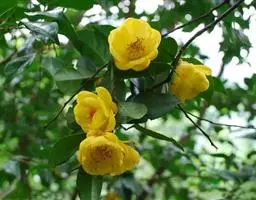 金花茶 Sealy)是山茶科山茶属植物。常绿灌木。叶革质,长圆形或披针形,基部楔形,上面深绿色,发亮,…
