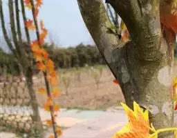 2.在为害严重地段四周划出2~3米远的场地,钉木桩并用铁丝拉线,拴养狗顺铁线来回奔跑,可迫使花鼠上树或逃跑,减轻为害。