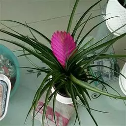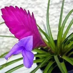 紫花凤梨,是凤梨科铁兰属的多年生草本植物。株高不及30厘米;叶片拱状线形,叶丛族生于短缩茎上,…