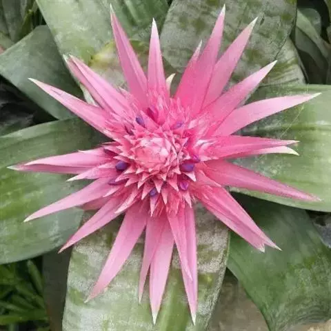 美叶光萼荷是凤梨科光萼荷属的多年生附生常绿草本植物。叶基生,莲座状叶丛基部围成筒状,…