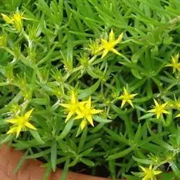 凹叶景天(拉丁文名:Sedum emarginatum Migo)别名:石板菜、九月寒、打不死、石板还阳、石雀还阳、岩板菜,.景天科景天属多年生草本植物。茎节的下部平卧于地面或地下、节上生有不定根;上部直立,淡紫色,略呈四棱形;叶片顶端圆而且有一个凹陷;枝叶密集如地毯,花较小,黄色,着生在花枝的顶端。花期5-6月,果期6月。室外越冬时部分叶片紫红色。耐旱,喜半阴环境。产云南、四川、湖北、湖南、江西、安徽、浙江、江苏、甘肃、陕西、福建等地。生于海拔600-1800米处山坡阴湿处。全草药用,可清热解毒,散瘀消肿,治跌打损伤、热疖、疮毒等病症。