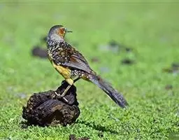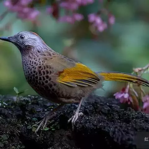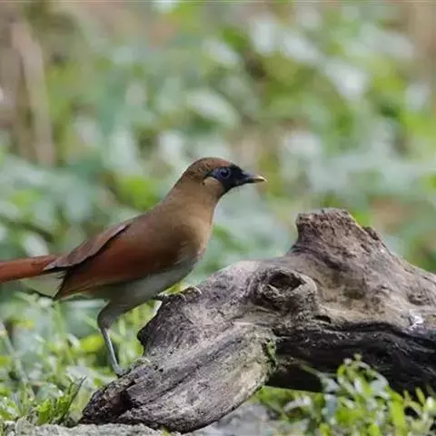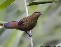 大噪鹛:中型鸟类,体长32-36厘米。额至头顶黑褐色,背栗褐色满杂以白色斑点,…
