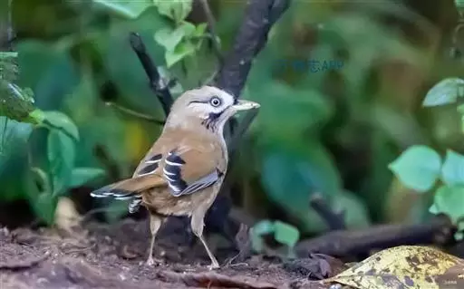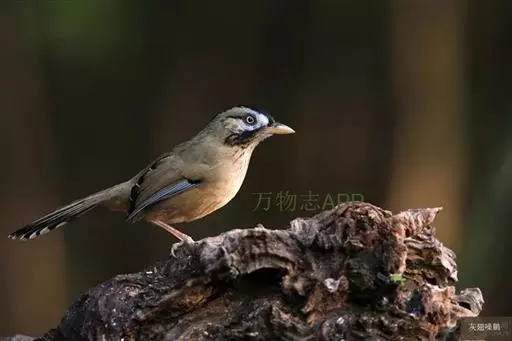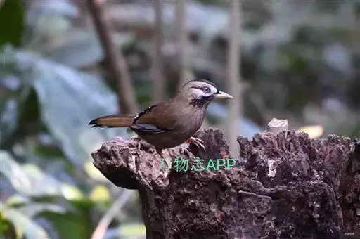 玉山噪鹛中等体型的褐色鸟类。白色长眉纹及髭纹显著;顶冠灰而具白色的鳞状斑纹;脸侧及颏褐色,…