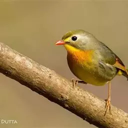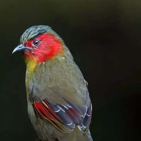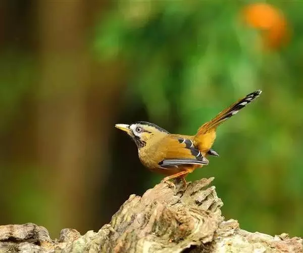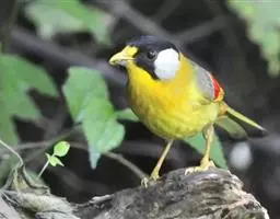 银耳相思鸟小型鸟类,体长14~18厘米。头顶黑色,耳羽银灰色,前额橙黄色;外侧飞羽橙黄色,基部朱红色,…