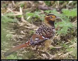 斑背噪鹛是噪眉科、噪鹛属中型鸟类,体长24-28厘米。额至头顶多为栗褐色,眼先、眼周和眼后纹均白色,…