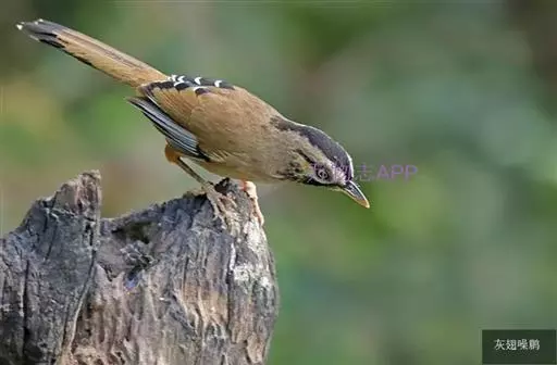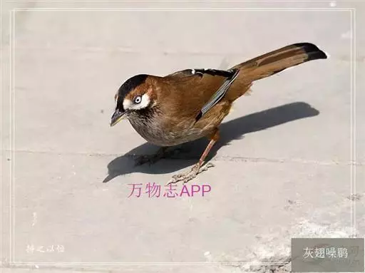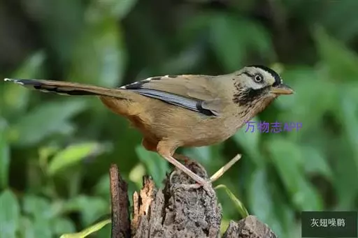 灰翅噪鹛(学名:Garrulax cineraceus)中型鸟类,体长21~25厘米。额黑色,头顶黑或灰色,眼先、脸白色。上体橄榄褐至棕褐色,尾和内侧飞羽具窄的白色端斑和宽阔的黑色亚端斑,外侧初级飞羽外翈蓝灰色或灰色,颧纹黑色。下体多为浅棕色;嘴、脚黄色。