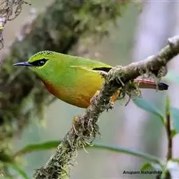 火尾绿鹛是莺科、绿鹛属小型鸟类,体长11-14厘米。上体绿色,头顶至枕具黑色鳞状斑,眼先和眼后黑色,…