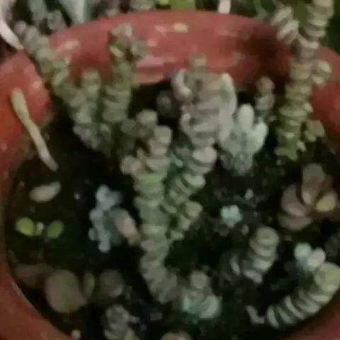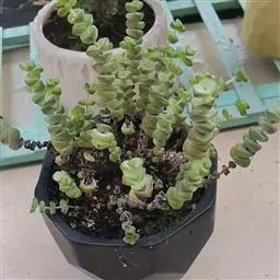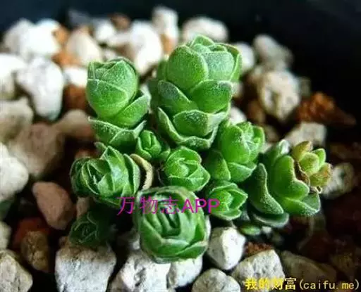 花椿 (学名:Crassula ‘Emerald’),又称玉梓。景天科,青锁龙属。杂交种,母本为玉椿,父本为苏珊乃(C. susannae)。叶片翠绿上覆极短柔毛,叶片交互对生;花开乳白色,五瓣,花朵簇生。