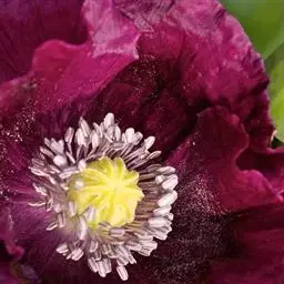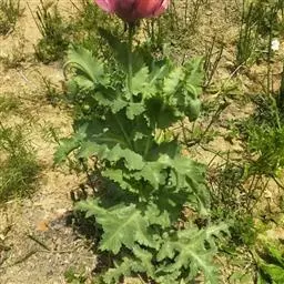 罂粟是一年生草本。茎高30-80厘米,分枝,有伸展的糙毛。叶互生,羽状深裂,裂片披针形或条状披针形,两面有糙毛。花蕾卵球形,有长梗,未开放时下垂;萼片绿色,花开后即脱落;花瓣4,紫红色,种植罂粟有多个花型和花色。基部常具深紫色斑,宽倒卵形或近圆形,花药黄色;雌蕊倒卵球形,柱头辐射状。花果期3-11月。