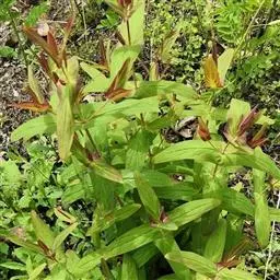 多年生草本,高0.5-1.3米。茎直立或在基部上升,单一或数茎丛生,不分枝或上部具分枝,有时于叶腋抽出小枝条,茎及枝条幼时具4棱,后明显具4纵线棱。叶无柄,叶片披针形、长圆状披针形、或长圆状卵形至椭圆形、或狭长圆形,长(2-)4-10厘米,宽(0.4-)1-2.7(3.5)厘米,先端渐尖、锐尖或钝形,基部楔形或心形而抱茎,全缘,坚纸质,上面绿色,下面通常淡绿色且散布淡色腺点,中脉、侧脉及近边缘脉下面明显,脉网较密。