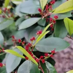 红花荷:金缕梅科红花荷属常绿乔木,高可达12米,嫩枝颇粗壮,叶厚革质,卵形,光滑无毛,有三出脉,叶…