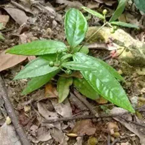 出自《本草图经》:百两金,叶似荔枝,初生背面俱青,结花实后,背紫面青。苗高二、三尺,有干如木,…