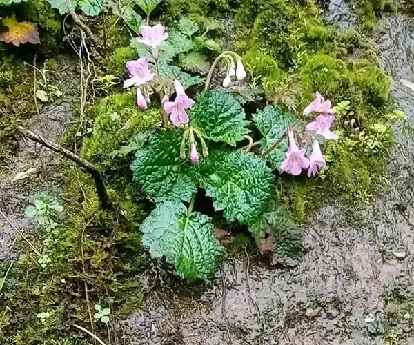 闽赣长蒴苣苔花粉红色,繁密可爱,花叶兼美,有较高的观赏价值。