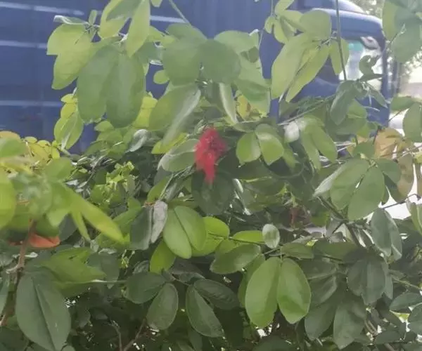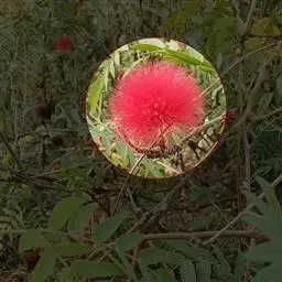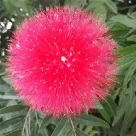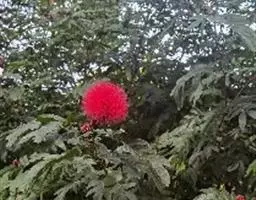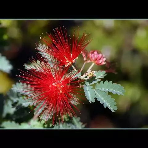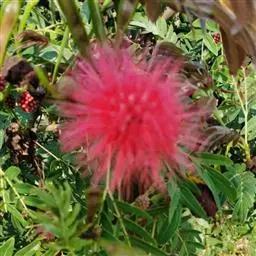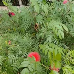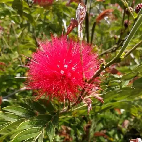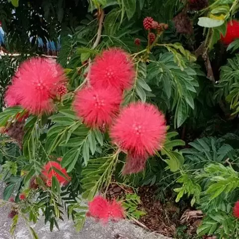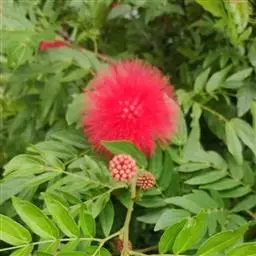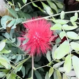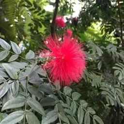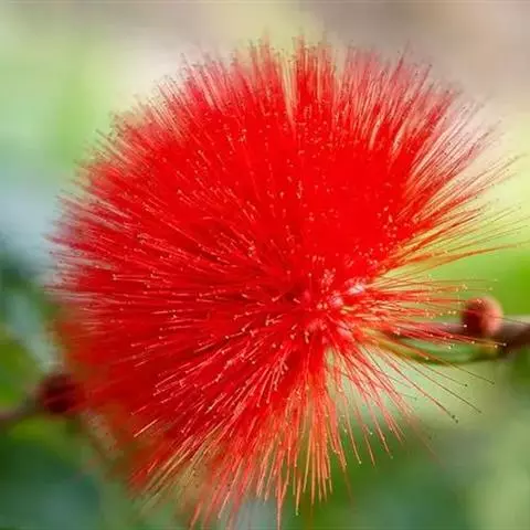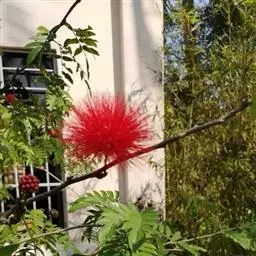 红粉扑花在正午或晚上时,其叶子和花朵均会闭合起来。盛开的花朵其头状花序腋生,有密集且细长的花丝聚合而成“束状”,颜色为鲜红色(花期最长为11个月)。