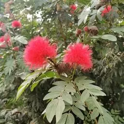 红粉扑花 红粉扑花开花良好,但不结实或结实少,种子常败育,无法采用播种方式进行大量繁育,一般采取无性繁育方法,即扦插育苗为主,红粉扑花采用硬枝扦插,时间多为秋季。