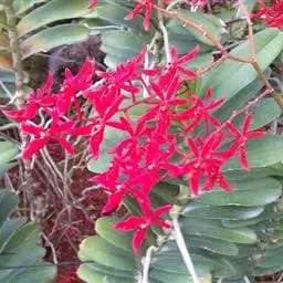 叶子表面宽厚,富肉质感且带有磨纱质感,看像石头质地;开红色小花,生于植株顶部,倒伞形密生,形状像花…