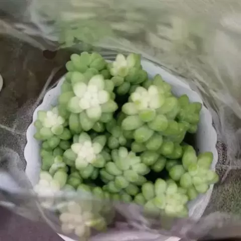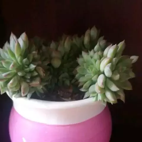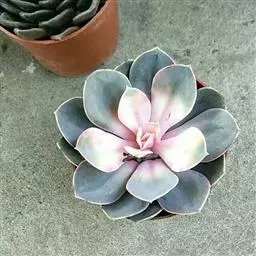 紫珍珠是景天科石莲花属的多年生肉质草本植物。植株中小型;叶片肉质,匙形,呈莲座状紧密排列;叶片粉紫色,…