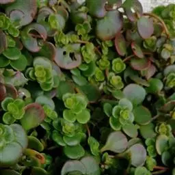 圆叶景天,景天科常绿多年生肉质草本植物,匍匐型生长,叶片对生,尖端钝圆,全光照条件下,叶片秋季变红,…
