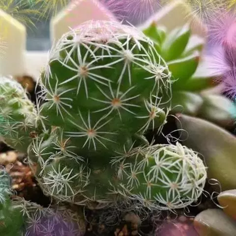 银手球,仙人掌科乳突球属,植株群生,小短圆筒形。原产墨西哥伊达尔戈州。