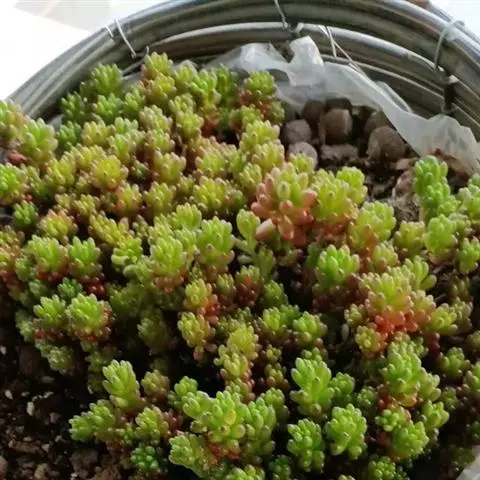 薄雪万年草别名矶小松,景天科景天属多年生草本植物,其细小的蓝绿色棒状叶片环绕生长于茎端,…