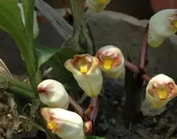 坛花兰:假鳞茎卵状圆柱形,长达15厘米,基部粗1.5-4厘米,具2-4个节,…