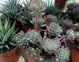 蓝石莲是景天科、拟石莲花属的多肉植物。茎部粗壮,成熟植株茎部木质化。叶片莲座型密集排列,株径不会很大,…