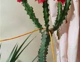 霸王鞭,是大戟科大戟属的多年生肉质灌木,全株含白色乳汁;茎直立,茎基部圆柱形,上部4~5纵棱,…