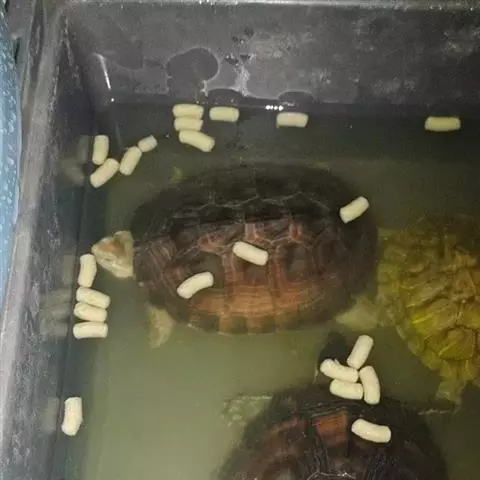 刚开始投饵时,鳄龟不习惯到食台上来,可根据它们喜好夜间觅食的习性,在傍晚将食物投喂到食台附近,逐步过渡到食台上,就这样慢慢地做好驯饵工作。第二天早上检查吃食情况,主要看有无剩余,并作记录 。