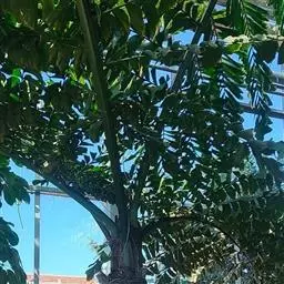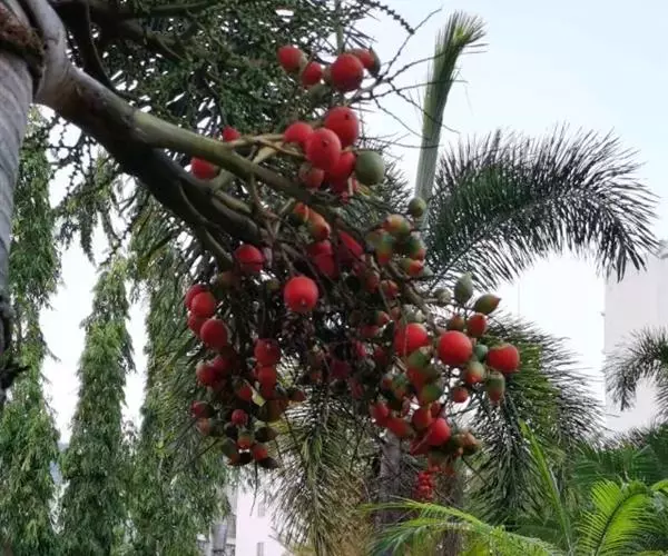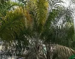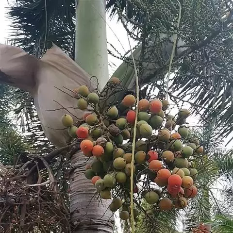 狐尾椰(学名:Wodyetia bifurcata A.K.Irvine)是棕榈科二枝棕属植物。植株高大、挺直秀美,茎干中部庞大,略似长花瓶状,银灰色。羽状复叶,小叶排列状似狐狸尾巴,叶弯垂。花单性,常3朵一组,中央为雌花,两侧为雄花。果椭圆形至卵圆形,熟时橙红色