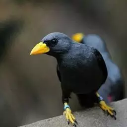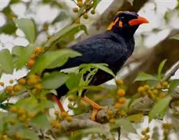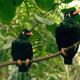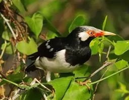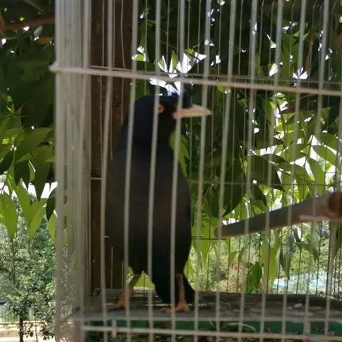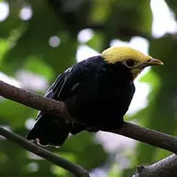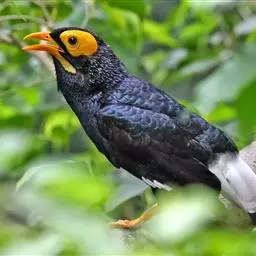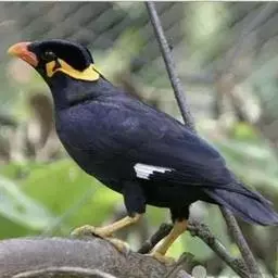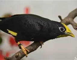 金冠树八哥为椋鸟科树八哥属的鸟类。体长约23厘米,闪辉黑色。特征为具翼斑及颏黄色,脸颊裸露皮肤粉黄色。…