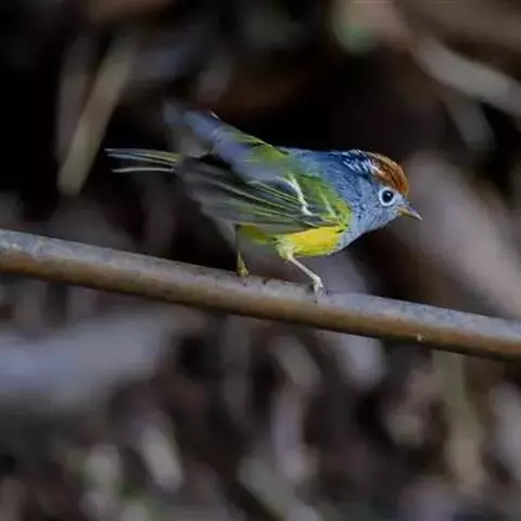 金冠地莺:形态与灰腹地莺相似,上体橄榄绿,前额至头顶渲染亮金黄色;下体几乎纯暗石板灰色,…