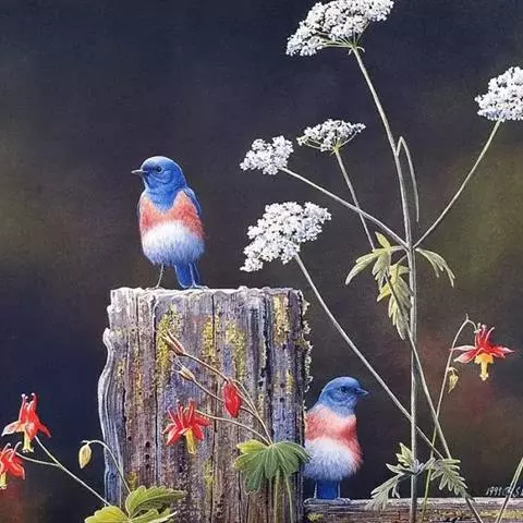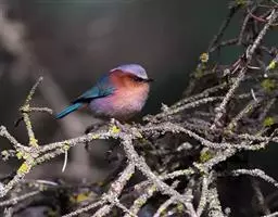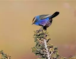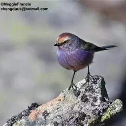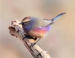 凤头雀莺:小型鸟类。体长9-10厘米,雄鸟呈毛茸茸的紫色和绛紫色,顶冠淡紫灰色,额及凤头白色,尾全蓝。…