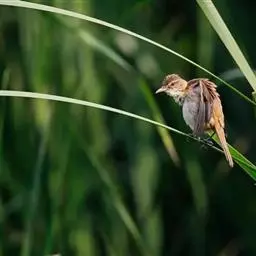 大苇莺:属小型鸟类,雌雄两性羽色相似。眉纹淡棕黄色;眼褐色;翅褐色具淡棕色的边缘;尾羽亦褐色,…