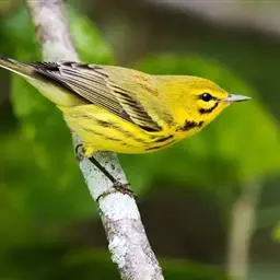 黑脸鹟莺:体长10厘米,是有特色的体小而多彩的莺鸟。粗眉纹,颏、喉及尾下覆羽黄色,脸罩黑,…