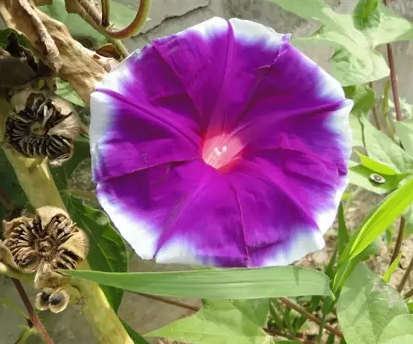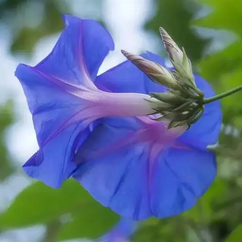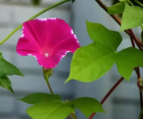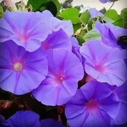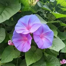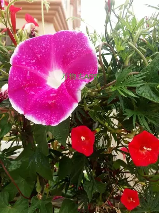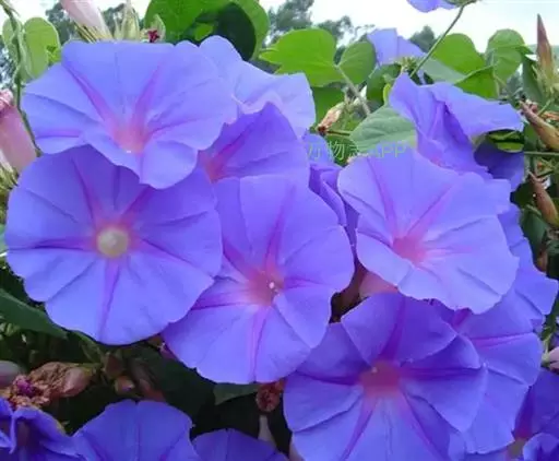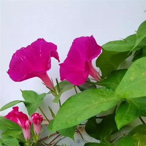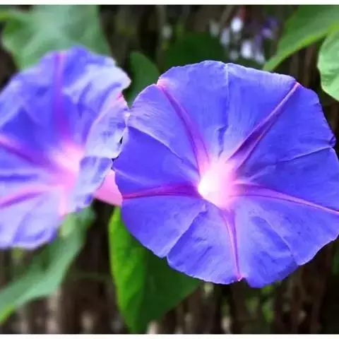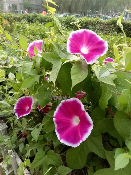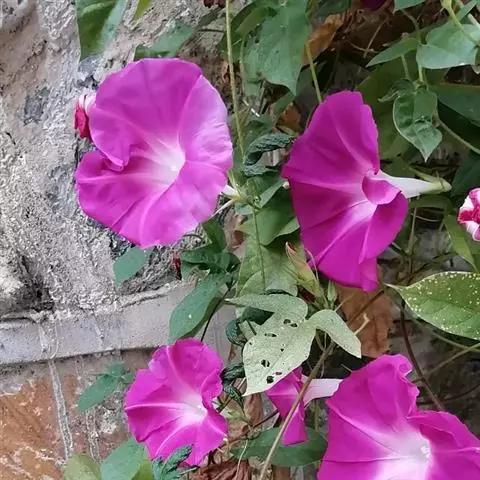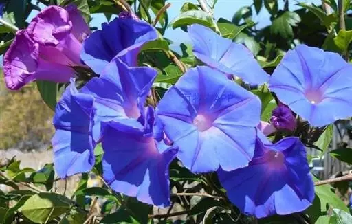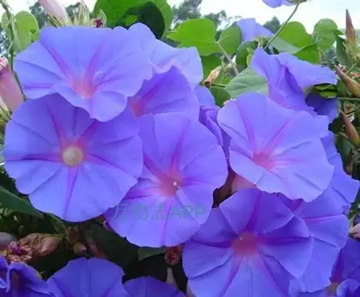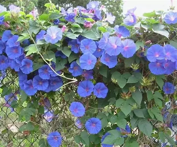 大花牵牛清晨开放,花大色艳,是夏秋重要的蔓性花卉。适用于花架、篱垣,为庭院及居室的遮荫植物。也可盆栽或作地被种植,别有风趣。