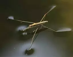 水黾是一种在湖水、池塘、水田和湿地中常见的小型水生昆虫。水黾科昆虫成虫长8至20mm,黑褐色,头部为三角形,稍长。体小 水黾 型至大型,长形或椭圆形。 口吻稍长,分为3节,第2节最长;触角丝状,4节,突出于头的前方。前胸延长,背面多为暗色而无光泽,无鲜明的花斑,前翅革质,无膜质部。身体腹面覆有一层极为细密的银白色短毛,外观呈银白色丝绒状,具有拒水作用。 其躯干与宽黾蝽科类似。它们的躯干非常瘦长,躯干上被极细的毛,这些毛厌水。腹部具明显的侧接缘。