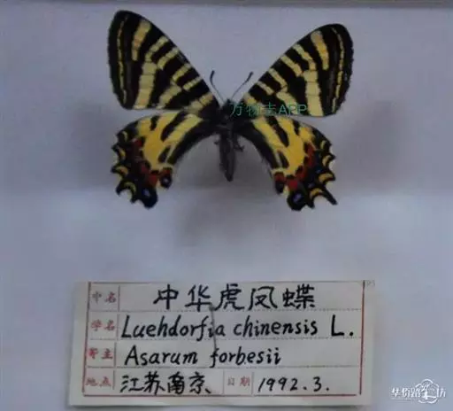 虎凤蝶(学名:Luehdorfia puziloi)是虎凤蝶属的蝴蝶种类,成虫体态中型,翅膀基色为黄色,前翅外缘有宽的黑带,翅面有一些黑色短纹,犹如虎皮。后翅外缘波形,尾突短,外缘黑带上镶有弯月形黄斑,黑带的中间嵌有蓝色斑点,最里面有一列弯月形红斑,十分美丽。喜欢生活在光线较强而湿度不太大的林缘地带。飞翔能力不强。经常寻访的蜜源植物主要有蒲公英、紫花地丁及其他堇科植物。完全变态,一生要经历卵、幼虫、蛹、成虫等四个阶段。产卵于芸香科、樟科、伞形花科及马兜铃科等植物上。分布于中国、日本和朝鲜半岛。