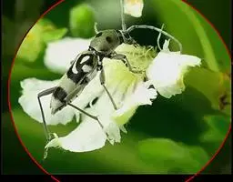 体型粗短,粗糙不平,具金属光泽。体长15~16.5mm,宽7.5~8.3mm。初化之蛹头胸部外观湿润,除翅芽浅绿色外,其余呈浅黄色,以后随着蛹体干燥,色泽逐渐变深,呈红棕色,最后整体呈茶褐色,且质地坚硬。蛹背面:头端有排列整齐的4个突起,其后方有2个突起。胸部远比腹部窄,前胸背板有一倒丫形脊突;中胸宽大、鼓突;后胸较窄,有一细丝围绕在后胸背面;胸部中央有蜕裂线。腹部可见10节,第1~3腹节由窄到宽,第4与第5腹节之间可以上下活动。每一腹节有矩形褐色内凹块5块,中央一块最宽,第一腹节中央凹块两侧有乳白色斑一对。蛹腹面:头部呈长方形;复眼半圆形,位于前方两侧,近触角基部;上唇圆弧形,中央凸出。腹末端强烈向腹面弯曲,与体中轴成直角。