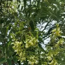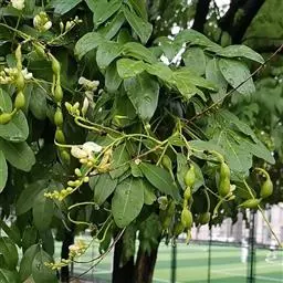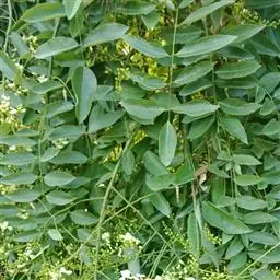 肥皂荚(Gymnocladus chinensis Baill)别名肉皂荚、四月红、油皂,是一种落叶乔木,无刺,高达5-12米;树皮灰褐色且有白色皮孔,二回偶数羽状复叶,无托叶,叶轴有槽,被面有短柔毛,几乎无叶柄。花杂性,为白色或带紫色,有长梗,向下垂。荚果长圆形,扁平或膨胀,无毛,有种子2-4颗,种子近球形而稍扁,黑色,平滑无毛。一般8月间结果。分布于江苏、浙江、江西、安徽、福建、湖北、湖南、广东、广西、四川等省区。生于海拔 150-1500米山坡、山腰、杂木林中,果含有胰皂素,可洗涤丝绸,亦可入药。种子油可作油漆等工业用油。