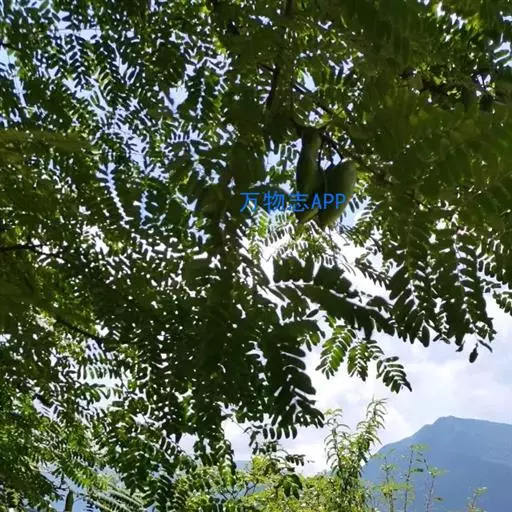 落叶乔木,无刺,高达5-12米;树皮灰褐色,具明显的白色皮孔;当年生小枝被锈色或白色短柔毛,后变光滑无毛。二回偶数羽状复叶长20-25厘米,无托叶;叶轴具槽,被短柔毛;羽片对生、近对生或互生,5-10对;小叶互生,8-12对,几无柄,具钻形的小托叶,小叶片长圆形,长2.5-5厘米,宽1-1.5厘米,两端圆钝,先端有时微凹,基部稍斜,两面被绢质柔毛。总状花序顶生,被短柔毛;花杂性,白色或带紫色,有长梗,下垂;苞片小或消失;花托深凹,长5-6毫米,被短柔毛;萼片钻形,较花托稍短;花瓣长圆形,先端钝,较萼片稍长,被硬毛;花丝被柔毛;子房无毛,不具柄,有4颗胚珠,花柱粗短,柱头头状。英果长圆形,长7-10厘米,宽3-4厘米,扁平或膨胀,无毛,顶端有短喙,有种子2-4颗;种子近球形而稍扁,直径约2厘米,黑色,平滑无毛。8月间结果。